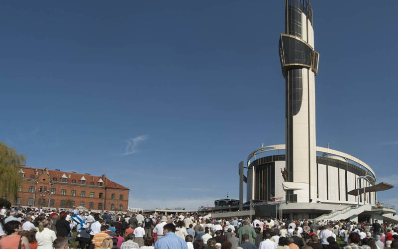 The Sanctuary of Divine Mercy (Sanktuarium Bożego Miłosierdzia) in Kraków is a major Catholic pilgrimage site located in the city's Łagiewniki district. It is the resting place of Saint Faustina Kowalska, a Polish nun whose visions of Jesus inspired the Divine Mercy devotion. The site includes both a modern basilica and the original convent where St. Faustina lived and died.A Divine Mercy pilgrimage to Krakow, Poland, centers on the Sanctuary of the Divine Mercy in Łagiewniki, which is the burial place of St. Faustina. It includes visiting the chapel with the original "Merciful Jesus" painting, seeing the relics of St. Faustina, and experiencing daily devotion at 3 p.m. during the Hour of Mercy. The pilgrimage can also include other sites related to St. Faustina and Pope John Paul II, such as his childhood church and former residence.Many Catholic tour operators offer packages that include these sites, sometimes as part of a larger tour of Poland that includes places like Częstochowa and Warsaw.The largest annual celebration is on the first Sunday after Easter, with special vigils and celebrations for Divine Mercy Sunday.